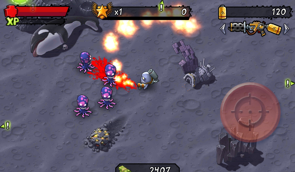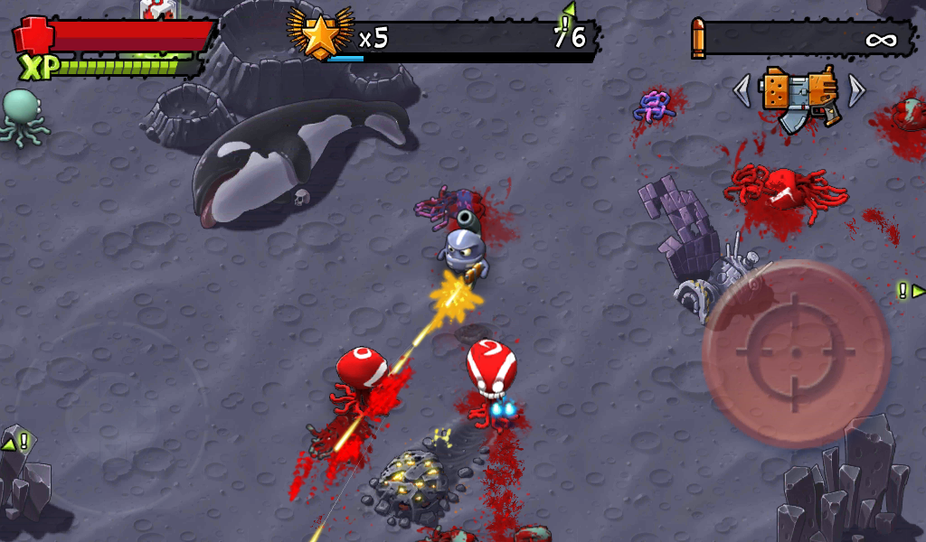 Конечно, не обошлось без возможности покупать игровую валюту за деньги. Если уж очень захотеть, то можно купить, но лучше заработать все своим непосильным трудом, так будет намного интересней. При старте каждого уровня Вы можете выбирать способ управления. Это ручная и автоматическая наводка оружия на врагов. Используя Auto Aiming, может быть не интересно убивать монстров, но когда нет желания играть на удовольствие, а игровой валюты очень не хватает, то можно использовать такой вариант управления.