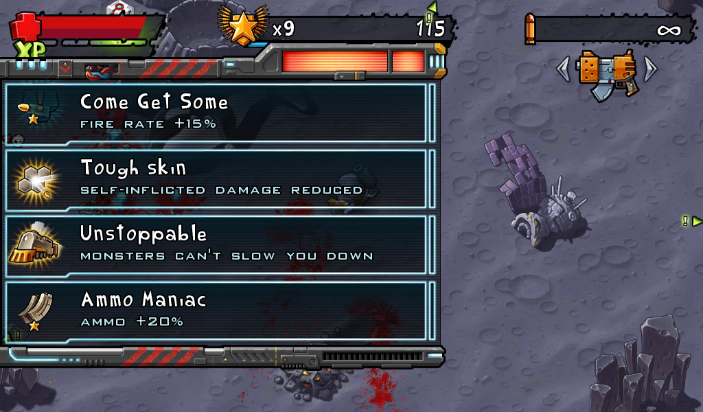 С каждым уровнем будет все сложнее держаться против численных орд чудовищ, потому есть очень продвинутая система прокачки. Во время игры с монстров будут падать деньги, за которые потом можно покупать разные предметы (аптечки, гранаты, мины, ускорения и другие полезные вещи) и оружие. Разнообразность вооружения радует, к тому же каждую пушку можно апгрейдить до трех уровней. Каждое улучшение делает выживание легче, а истребление монстров более эффективным.