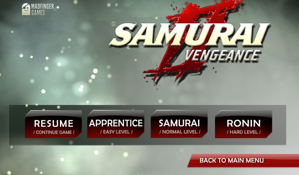 Доброе время суток, дорогие читатели нашего сайта! Сегодня мы поговорим об интересном, хоть и не очень новом слэшере для мобильных телефонов и планшетов, работающих на ОС Andorid. Название этой забавной игры Samurai 2 Vengeance. В принципе, таких игр не очень много, а именно, где можно разрубить врага ровно пополам или отрезать головы невнимательным противникам. Жестокость игры дополняется особенной атмосферой и красивыми звуками.